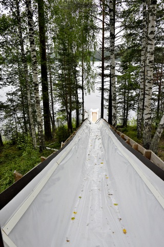 Vesiliukumäki on myös jo valmiina odottamassa HOO2OOn kävijöitä. Kukahan laskee vauhdikkaimmin?