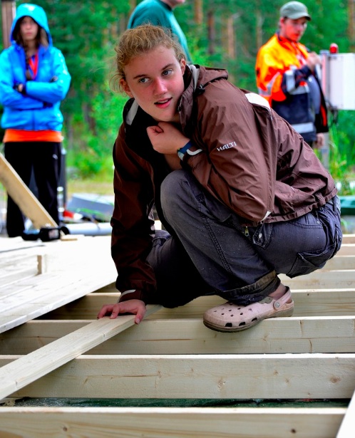 Leirillä käytetään ajoittain myös lapsityövoimaa. Miisa rakensi ahkerasti, ja samalla hän hyödynsi kulkupelinä äitiään Ellua.